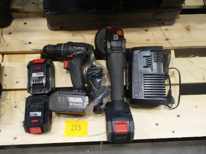 haakse slijper en boormachine, vv 4x accu en lader