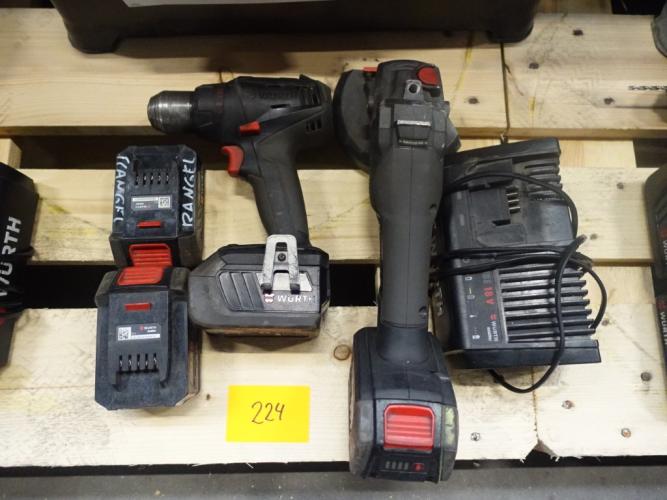 haakse slijper en boormachine, vv 4x accu en lader