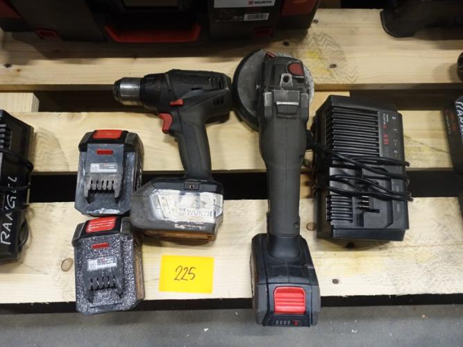 haakse slijper en boormachine, vv 4x accu en lader