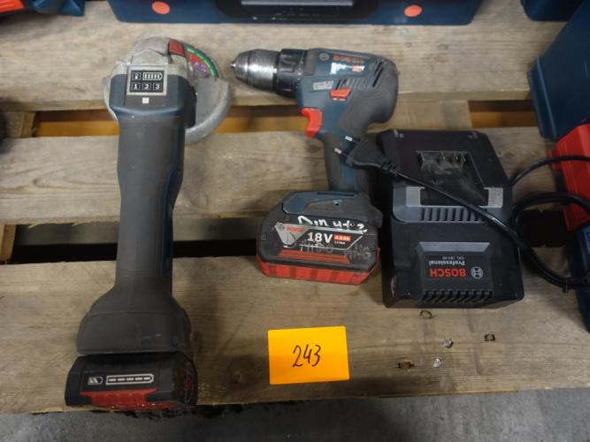 haakse slijper en boormachine, vv 2x accu en lader