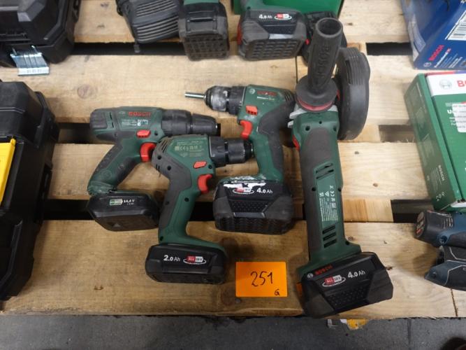 haakse slijper en 3x boormachine, vv 4x accu