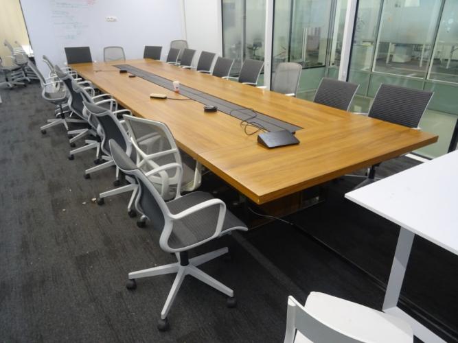 vv : vergadertafel , 20 stoelen , tafel , vuilbak , ...