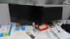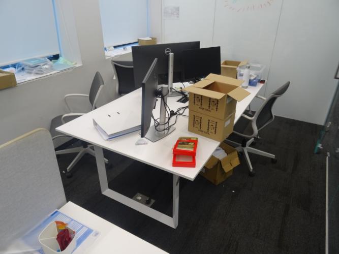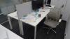 vv: 2 bureaueilanden (2200x1200x740/2400x1250x730) 5 schermen , versnipperaar , kantoor toebehoren ,....