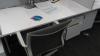 6000x1500x720 , vv 8 stoelen , 1 schermen ,8 ladekasten met inhoud