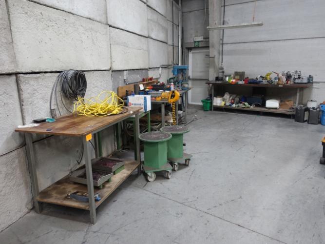 Tafels, kolomboor, werkstock, 2x slijpmolen , diversen ( ALLES MOET MEE !)