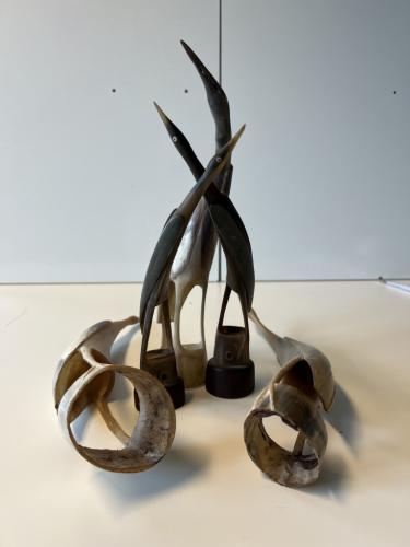 Hoorn sculpturen van 5 vogels