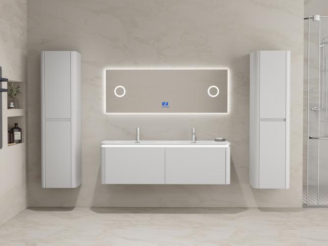 Badkamermeubel 2 persoons 140 cm - Wit - 2 zijkasten, 1 LED spiegel