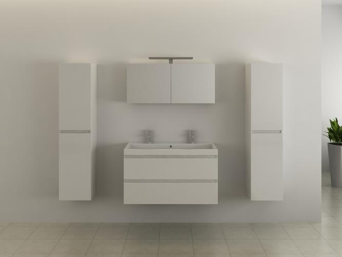 2-persoons badkamermeubel 100 cm hoogglans wit - Incl. kranen