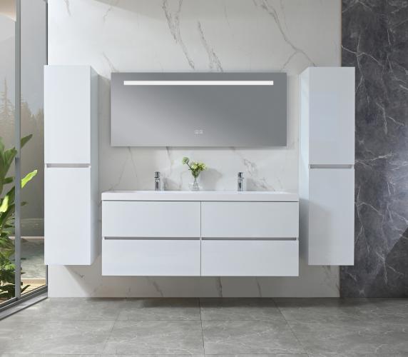 Voorzien van:Kranen inclusief pop-up afvoer – 4 stevige metalen lades - Softclose lade systeem - LED spiegel met anti-fog systeem - Voorgemonteerde zijkast en wastafelmeubel
