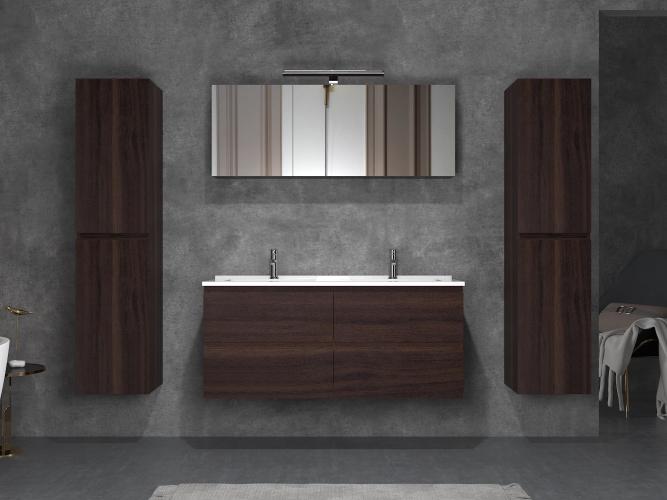 2-persoons badkamermeubel 120 cm donker hout decor - Incl. kranen