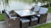 Diningset 9-delig Dark brown wicker / witte kussens