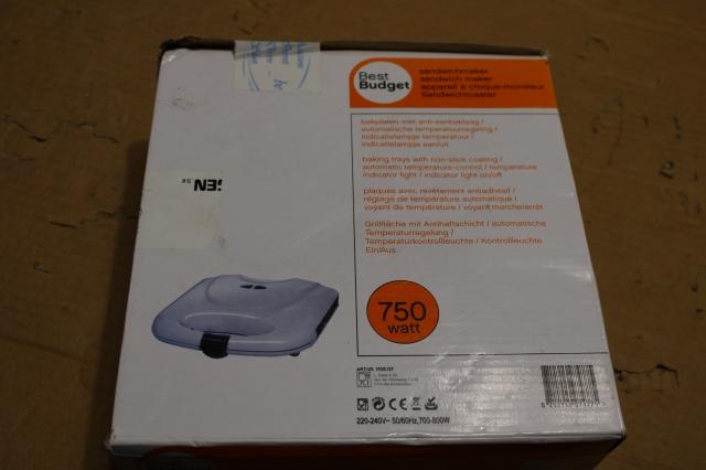 Minieme gebruikssporen, getest en werkend, ok, Best Budget sandwichmaker, bakplaten met anti-aanbaklaag, automatische temperatuurregeling, indicatielampje temperatuur, indicatielampje aan/uit, 8712715974775