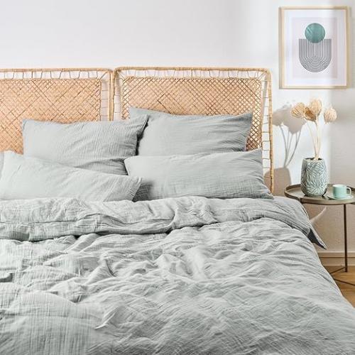 Ongebruikt, ok, Blumtal Mousseline Bedlinnen 200x200 cm - OEKO-TEX Gecertificeerd Katoen - Dekbedovertrek + 2x Kussensloop 80x80 - Zomer Blauw, B0D6Z2PP42