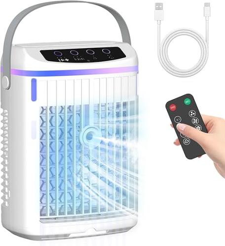 Lichte gebruikssporen, getest en werkend, ok, Draagbare luchtkoeler, koeling luchtventilator, 4 in 1 verdampingskoelers, draagbare usb ventilator, usb koelventilator met afstandsbediening LED-licht 3 snelheden Timer voor thuis, kantoor, B0F1CNLV7X