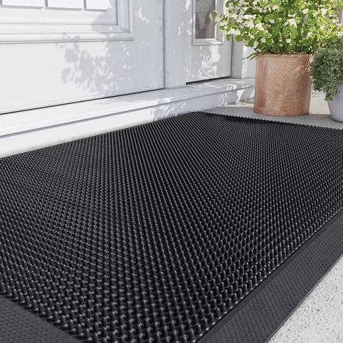 Ongeopend, in seal, ok, DEXI Deurmat 91.5 x 122 cm, Antislip Rubberen Deurmatten, Gemakkelijk Schoon te Maken, Waterdicht Binnen- en Buiten Modder Schraper voor Entree, Terras, Tuin, Zwart,B0DXB3K8Y2