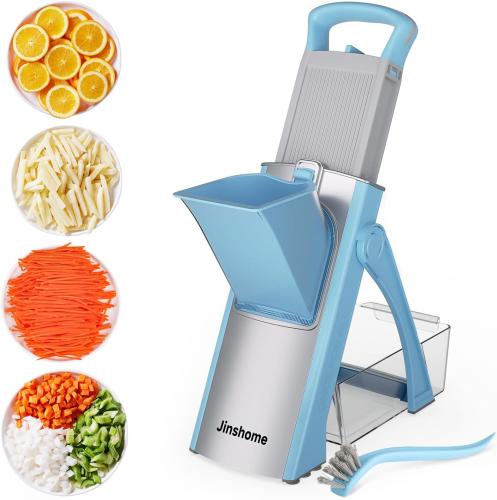 Ongeopend, INSHOME Veilige Mandoline Snijder, Groentesnijder, Voedsel Chopper Verstelbare Dikte Aardappel Snijder Frieten Cutter, Wortel Rasp Ui Snijder en Chopper, blauw , B0CK161CGK
