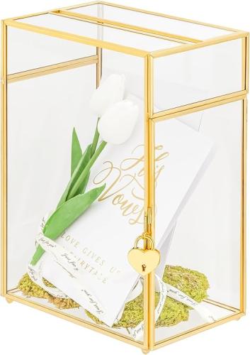 Ongebruikt, volledig, ok, NCYP 20,3 x 14 x 28,7 cm kaartenbox van glas voor bruiloftsrecepties, rechthoekige glazen doos met sleuf en slot voor geld, enveloppen, B0CKRDYMLH