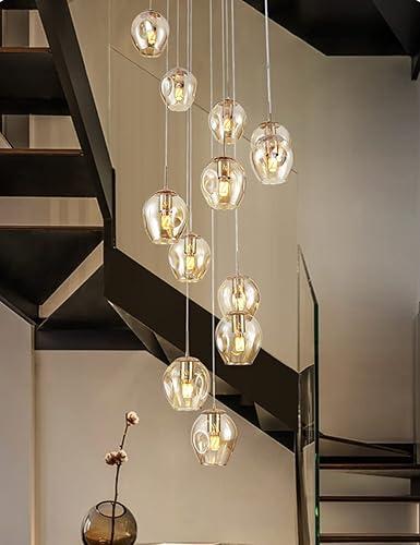 Ongebruikt,getest en werkend, volledig, ok, Moderne, eenvoudige wenteltrapkroonluchter met kristallen lampenkap, plafondbollen, glazen bubbellamp, grote hanglamp voor woonkamer, hal, duplex hanglamp (10 lampen) [Energieklasse A],B0BNVLPY68