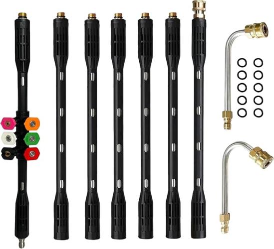Ongebruikt, volledig, ok, YUET Hogedrukreiniger verlengstaaf, verlenging Power Washer Lance met 6 sproeikopuiteinden, 9 stuks gootreiniger opzetstuk gebogen staaf, 1/4 inch Quick Connect, anti-gelekte ringvervanging, B0D7VZ4KMS