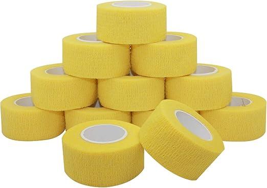 Ongeopend, ok, 2 x COMOmed Cohesive Bandages Vet Wrap Elastisch verband Geel 2,5 cm x 4,5 m 12 rollen Enkel Niet-geweven FDA-gecertificeerd, B01MD1Z5T9