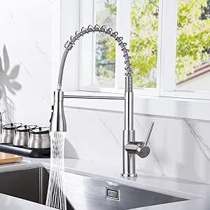 Ongebruikt, ok, Yuanny Waterkraan voor de keuken met sproeier, uittrekbaar, hogedruk keukenkraan, 360 graden draaibaar, mengkraan, spoelbakarmatuur, keukenkraan, spiraalveerkraan, roestvrij staal 304, geborsteld, B0C9J1YWNX