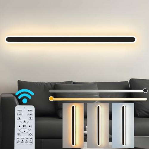 Ongebruikt, getest en werkend, volledig, ok, LED-wandlamp voor binnen, dimbaar, 38 W wandlamp met afstandsbediening 2,4 GHz, 10-100% helderheidsinstelling,zwart voor slaapkamer, woonkamer, gang, trappenhuis, 100 cm, 110-240 V, B0DK2QTY2T