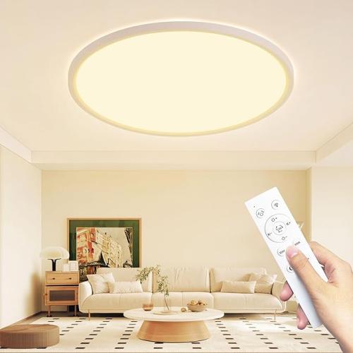 Ongebruikt, getest en werkend, volledig, ok, LED-plafondlamp, plat, dimbaar, 56 W, diameter 59 cm, plafondlamp met afstandsbediening, 3000-6500 K, ultradunne plafondlamp, rond, voor woonkamer, slaapkamer, kinderkamer, kantoor, wit, B0DX68NN47