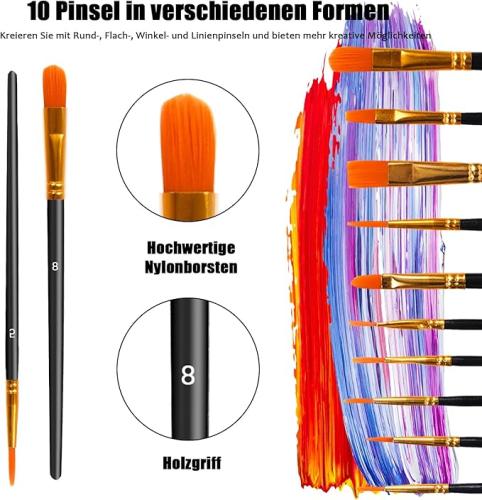 Ongeopend, TBC Acrylverfset, 48 x 60 ml, acrylverfset met 10 penselen, waterdicht en lichtecht, sneldrogend, acrylverf B0D3DQ8XRH