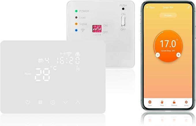 Ongebruikt, ok, KETOTEK Slimme Draadloze Thermostaat WiFi met RF Ontvanger 5A voor Ketel, Draadloze Kamerthermostaat Ontvanger kit Compatibel met Alexa, Programmeerbare, Tuya/Smart Life APP Bediening, Droog Contact, B0FLHZBK5X