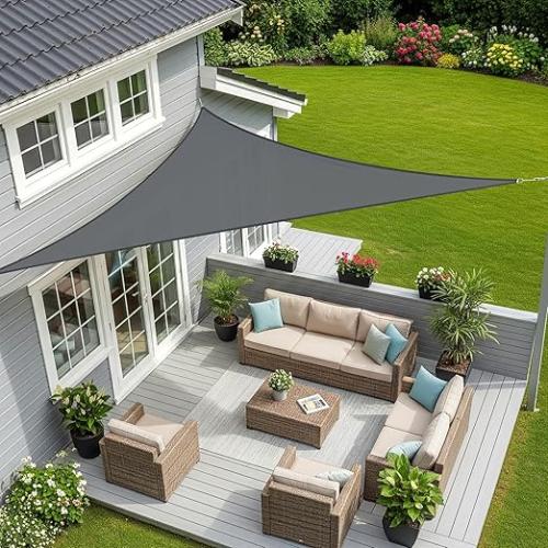 Minieme gebruikssporen, ok, Sunnylaxx 5 x 5 x 7 m, zonnezeil, driehoekig, waterdichte zonwering, zonnezeil, kleur antraciet, 95% uv-bescherming, B09P4QYPCC