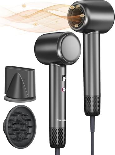 Ongeopend, in seal, Tranxphit Haardroger met Hoge Snelheid: 160, 000 RPM Hoge Snelheid Brushless Motor Föhn, 500 Miljoen Negatieve Ionische Haardroger, Low Noise Reizen Haardrogers Voor Vrouwen en Mannen met Diffuser, B0F12Z7T8Y