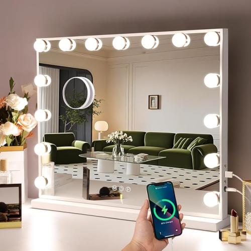 Ongebruikt, getest en werkend, volledig, ok, Hansong Make-upspiegel met verlichting, Hollywood-make-upspiegel met 15 ledlampen, 3 kleurverlichtingsmodi, verlichte make-up, tafelspiegel voor kleedkamer, slaapkamer,B09CGJKVBL