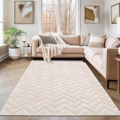 Ongebruikt, originele verpakking ontbreekt, ok, SHACOS Vloerkleed, Modern Crèmekleurig Tapijt Voor Woonkamer En Slaapkamer, Groot 160 x 230 cm, Machinewasbaar, Zacht, Scandinavisch Geometrisch Patroon, Woondecoratie,B0DB1YHCF2