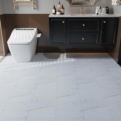 Ongeopend, in seal, 5 x VaryPaper Vloertegels, zelfklevende witte marmeren vinylvloertegels, 30 cm x 30 cm, 10 stuks, laminaatvloeren, plakkende vloertegels voor badkamer, keuken, vloeren, witte vloersticker voor woonkamer, B0CSD3MQ2Q