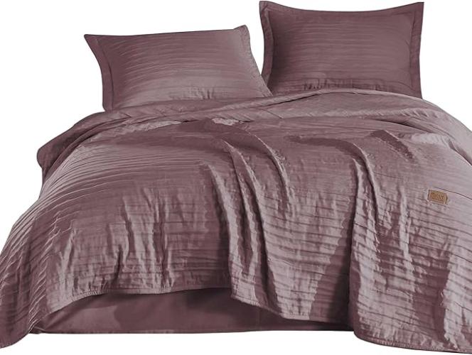 Ongebruikt, ok, Elart Sprei van 220 x 240 cm en 2 kussenslopen van 50 x 70 cm, bedsprei, sprei, knetterende geweven woondeken, zacht en modern, pruim,B0BLC8GHJJ