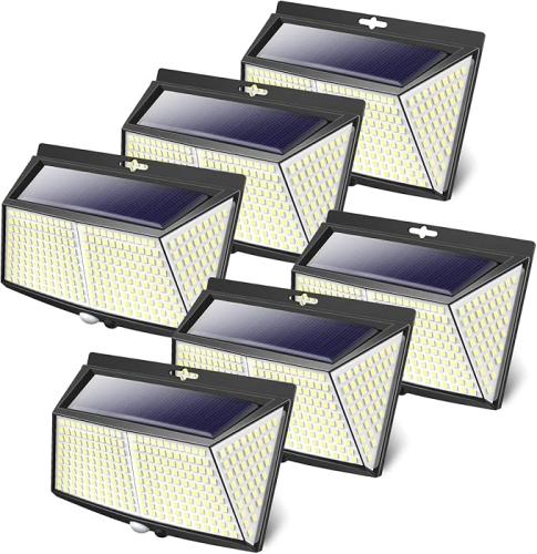 Ongebruikt, getest en werkend, compleet, LOTMOS Set van 6 solar lampen met bewegingssensor, 308 LED's, 3 standen, 270° LED, IP65, waterdichte wandlamp voor muur, paal, pad, B0BW46XWNG