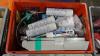 vv 20x grijpbak , gevuld met oa: koppelingen, schuimbussen , silicone , ...