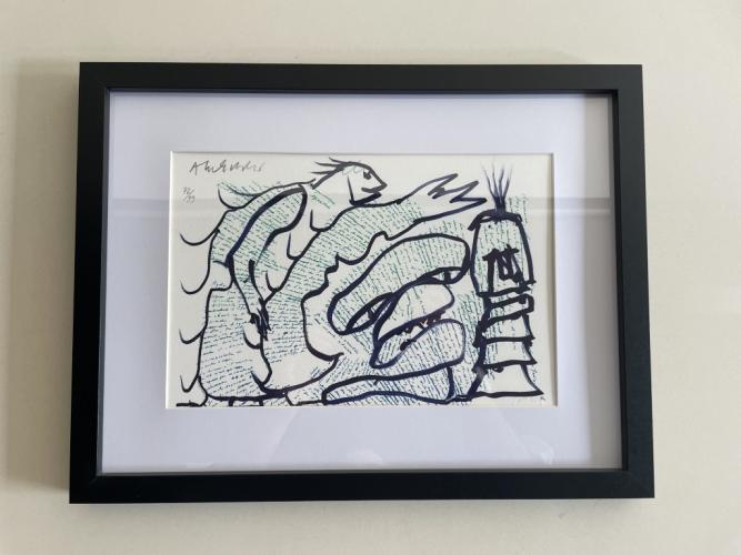 Getekend en gemaakt door de door Alechinsky op een manuscript van Marcel Moreau.