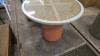 DIA 100CM, Hoogte 76cm -Mortex poot Terracotta - Houten tafelblad Riet met glastop