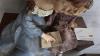 Brocante: 2x beeld hars op houten sokkel