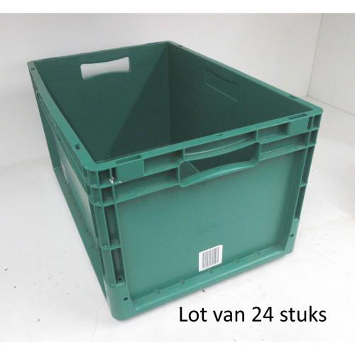 Afmetingen: 600x400x325mm hoog - 60L - Materiaal: PP recycle - Kleur: groen - Gewicht: 2,11kg - Goedgekeurd voor gebruik voedingsmiddelen - Staat: Nieuw