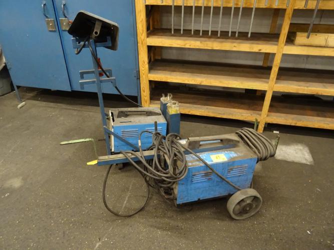 2x Verrijdbare laspost + 2x kunstof bak met inhoud