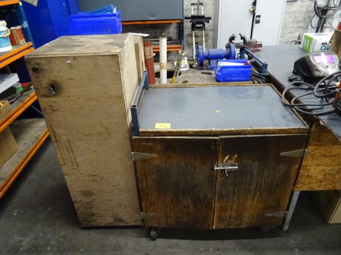 2x Houten kar + 2x houten kastje