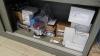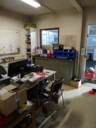 oa. bureau, bureaustoelen, dossierkasten, computer, printer, papier, schuurpads, ... (alles moet mee)
