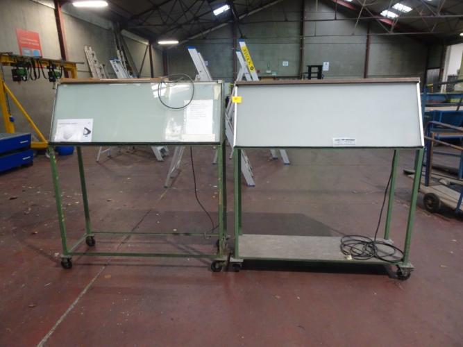 2x Metalen werktafel + 2x lichtbak