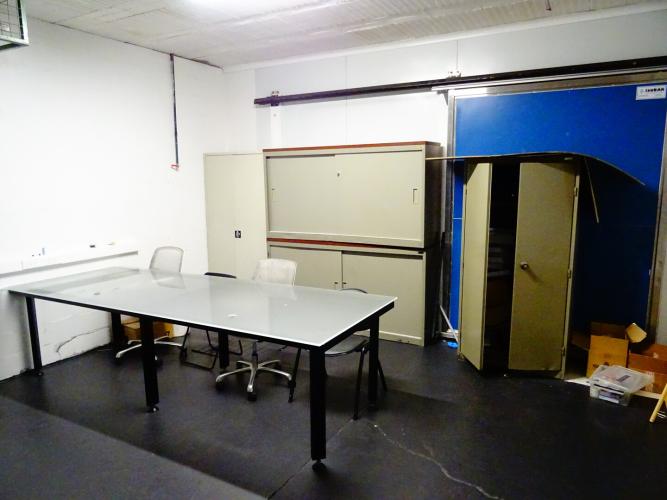 metalen tafel vv glazen blad, metalen kasten, ... (alles moet mee)