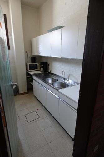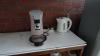 Waterkoker, microgold, koffiezet, partij glazen + borden + bestek, 2x afvalbak, Senseo, divers poetsmateriaal, tuingerief, magneetbord, bulex, frigo, waterkoker, watertap +++ alles moet mee