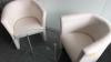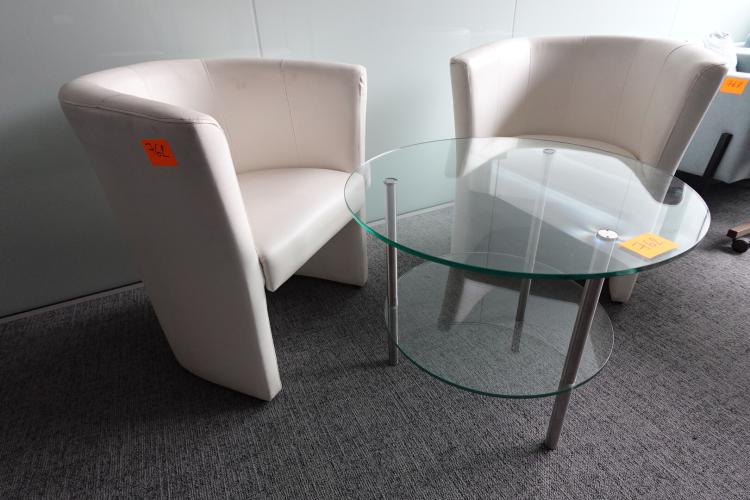 2x lederen kuipzetel beige met ronde glazen tafel