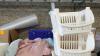 oa: plastieken bakken , kussens, deken , winkelmand ,....