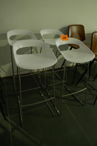 4 metalen barstoelen met zitting in witte kunststof